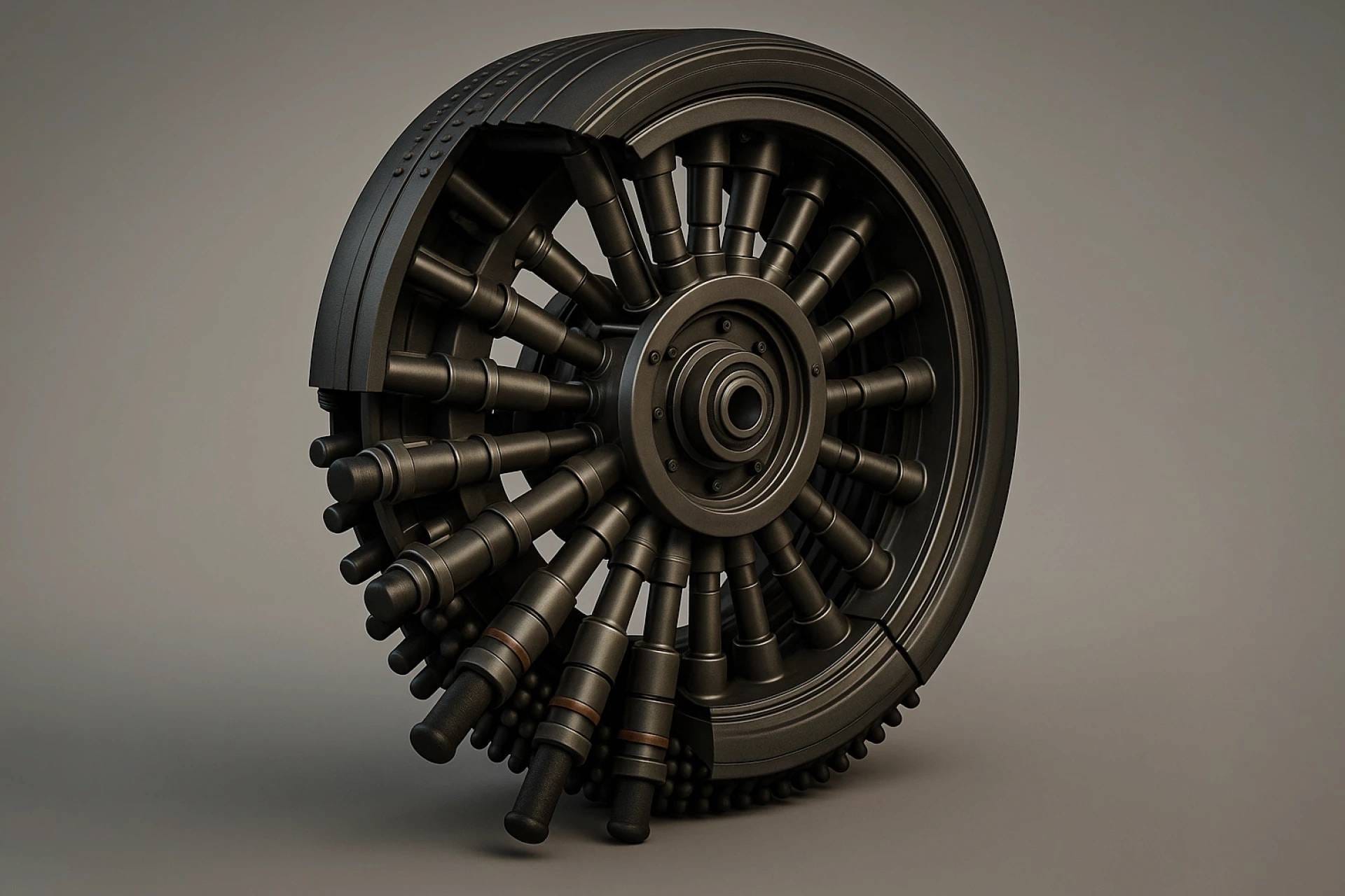 Hiç “maden kamyonu” gördünüz mü bilmiyorum. Ben gördüm ve hala unutamıyorum. Her biri ortalama 300 ton ağırlığında ve 360 tona varan taşıma kapasiteli bu canavarların en dertli yanlarından biri, en geç 9 ayda bir değişmesi gereken lastikleri. Çapı 4 metreyi bulan ve her birinin ağırlığı 6 tona ulaşan bu lastikler, kamyon başına ortalama 7 milyon dolar ek maliyet çıkarıyor. ABD / Arizona merkezli “Global Air Cylinder Wheels” adlı girişim, 10 yıllık çalışma ve 75 patent ile kauçuk tabanlı lastiklerin yerini alacak, azot dolu süspansiyonla desteklenen göbeği ve tamburu çelikten, yepyeni bir seçenek geliştirmiş.