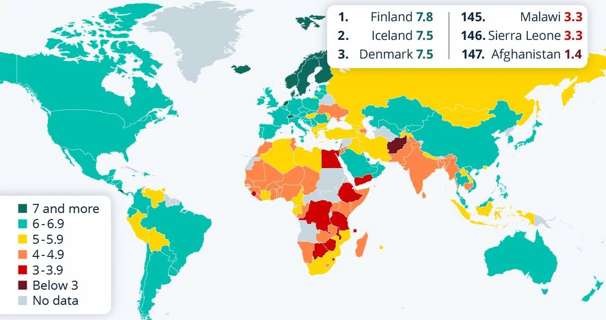 Britanya / Oxford Üniversitesi’ne bağlı (“Esenlik Araştırmaları Merkezi” şeklinde çevirebileceğimiz) “Wellbeing Research Centre” her sene bir küresel mutluluk endeksi raporu yayımlıyor. Bu seneki sonuçlarda da liderlik 9 yıldır olduğu gibi Finlandiya’da kaldı. Devamında İzlanda, Danimarka, İsveç ve Norveç var. Soğuk iklimin mutlulukla bir ilgisi var mı dersiniz? İlginç ayrıntılara gelirsek: Sıralamanın ilk 10 satırda anadili İngilizce olan hiçbir ülke yok. 4 sıra birden yükselerek ilk 10’a giren Costa Rica da dikkat çekici. En mutsuz ülke ise Afganistan. Merakınızı gidereyim; Türkiye 94. sırada.
